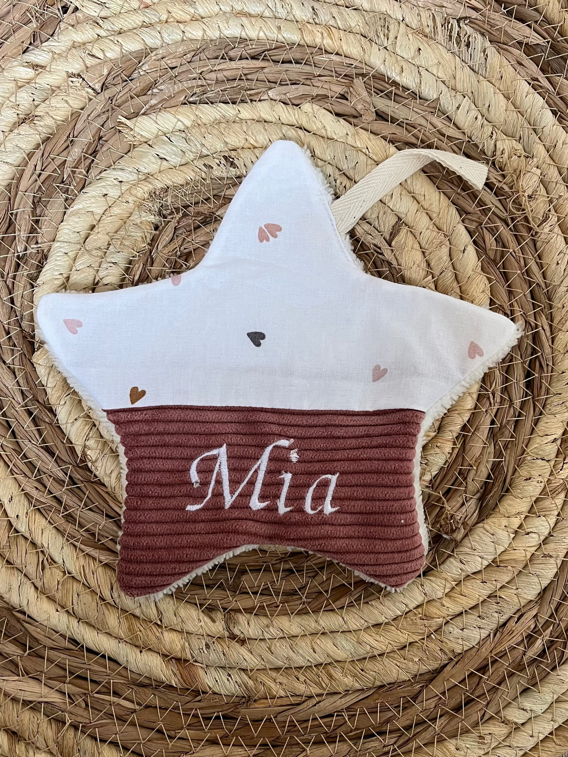 Un petit doudou personnalisé en forme d'étoile pour accrocher la tétine de votre enfant. Avec ce petit doudou en forme d'étoile, votre enfant trouvera beaucoup plus facilement sa tétine dans son lit. Le doudou étant personnalisé avec le nom de votre enfant, il sera très utile à la crèche ou à l'école, la tétine de votre enfant sera facile à identifier parmi toutes les autres.