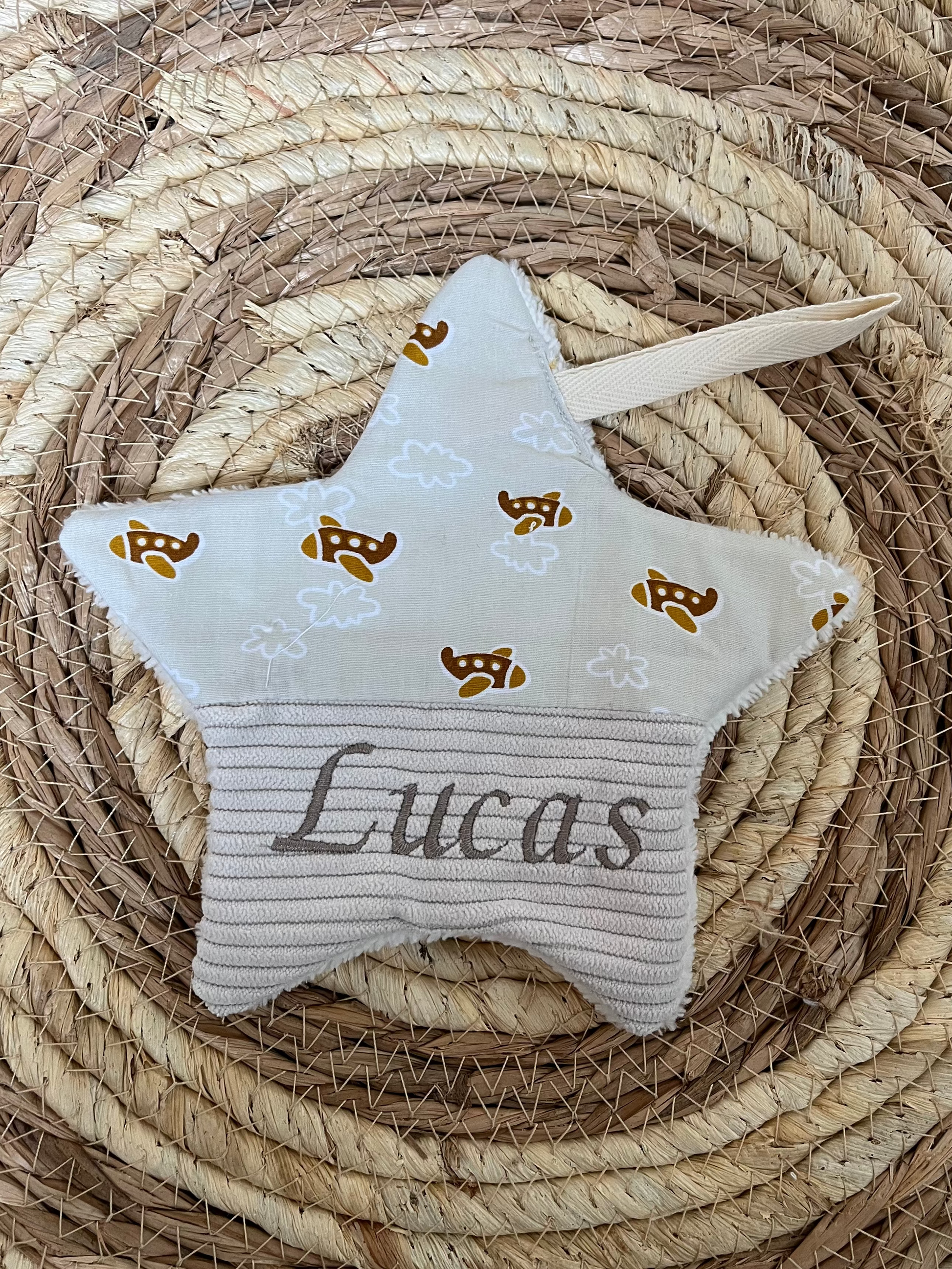 Un petit doudou personnalisé en forme d'étoile pour accrocher la tétine de votre enfant. Avec ce petit doudou en forme d'étoile, votre enfant trouvera beaucoup plus facilement sa tétine dans son lit. Le doudou étant personnalisé avec le nom de votre enfant, il sera très utile à la crèche ou à l'école, la tétine de votre enfant sera facile à identifier parmi toutes les autres.
